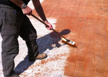 Approximately every 3-4 years imprinted concrete driveways and patios should be re treated with paving sealer . The imprinted concrete will then only require minimal maintenance to maintain that ‘just laid’ look.